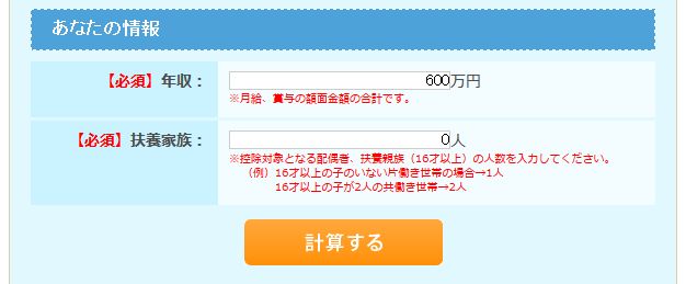 こちらで簡単に年収から受け取れる住宅ローン減税額がわかりますので、試算してみましょう。所得が600万円の方を例にしてみます。