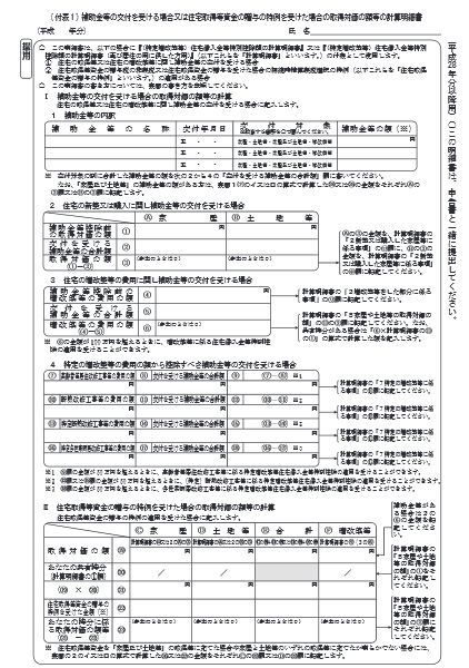 (4)『(付表1)補助金等の交付を受ける場合又は住宅取得等資金の贈与の特例を受けた場合の取得対価の額等の計算明細書』に必要事項を記載