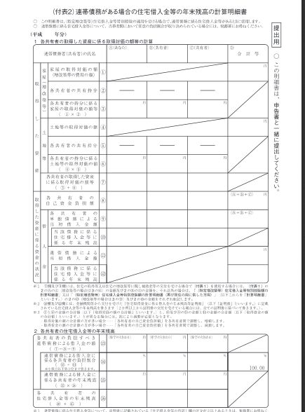 (5)連帯債務に係る住宅借入金等がある場合 『(付表2)連帯債務がある場合の住宅借入金等の年末残高の計算明細書』に必要事項を記載